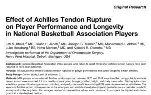 今回紹介する論文は、アキレス腱を断裂した選手がバスケ最高峰のNBAに復帰できる確率と、パフォーマンスへの影響を研究した論文です。