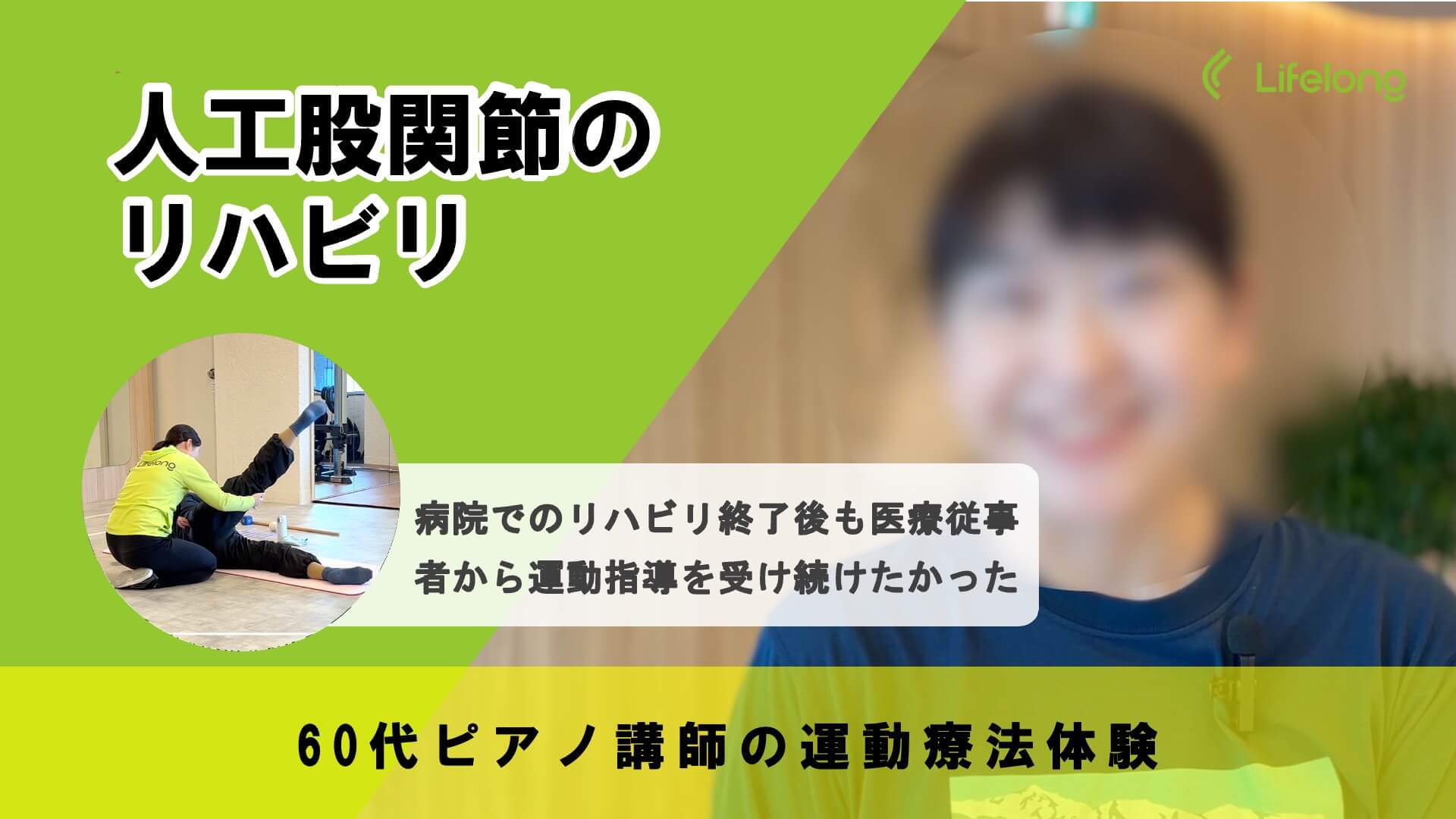 Yさんはジョギング中に損傷した膝関節の軟骨のリハビリで相談に来られました。初めは手術を回避して運動療法だけで改善が見られましたが、日常生活中に2度目の損傷をしてしまい、モザイクプラスティという関節軟骨の手術を受けることになりました。病院でのリハビリが終了した後も普段の生活で痛みを感じるということで、Lifelongで運動療法を再開。スクワットでも膝に痛みを感じる状態から、3ヶ月ほど経った頃にはランニングができるまで改善することができました。